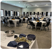 How large is your event space?Our event hall is 3500 square feet — perfect for weddings, receptions, corporate events, fundraisers, reunions, quinceañeras, baby or bridal showers, holiday parties, graduation parties, trade shows, live performances, and more.