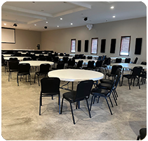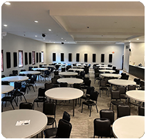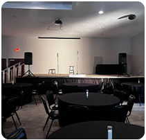 Each rental includes access to the event hall, built-in stage, tables and chairs, as well as general support for event setup.